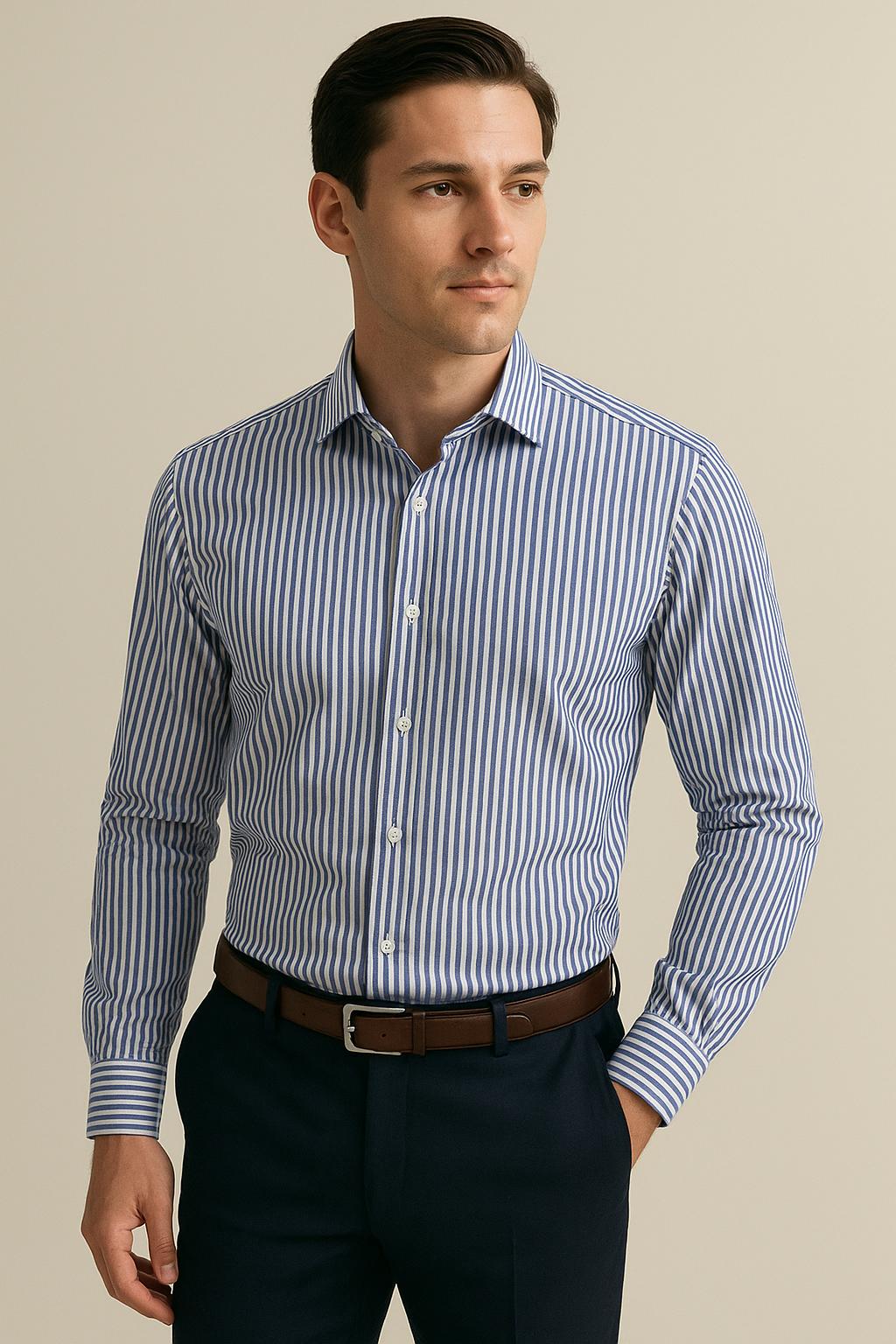 Camicia Maniche Lunghe Rigata A101 Royal/Bianco