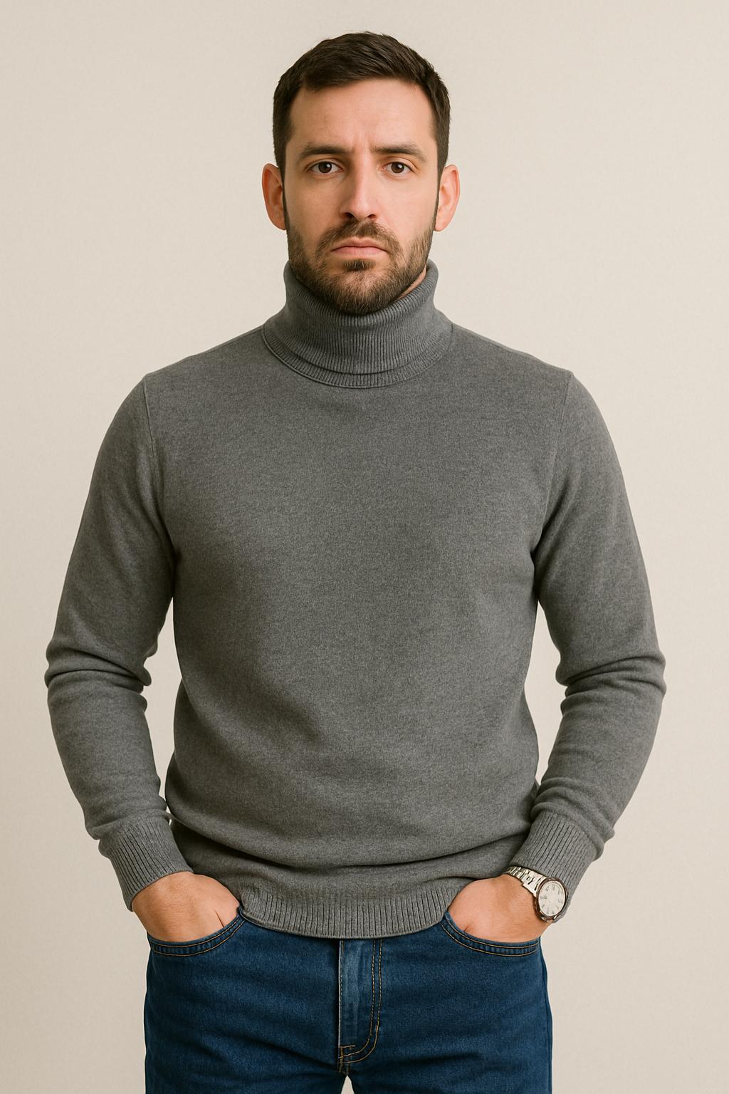 Maglione Collo Alto Basic Essntials Grigio